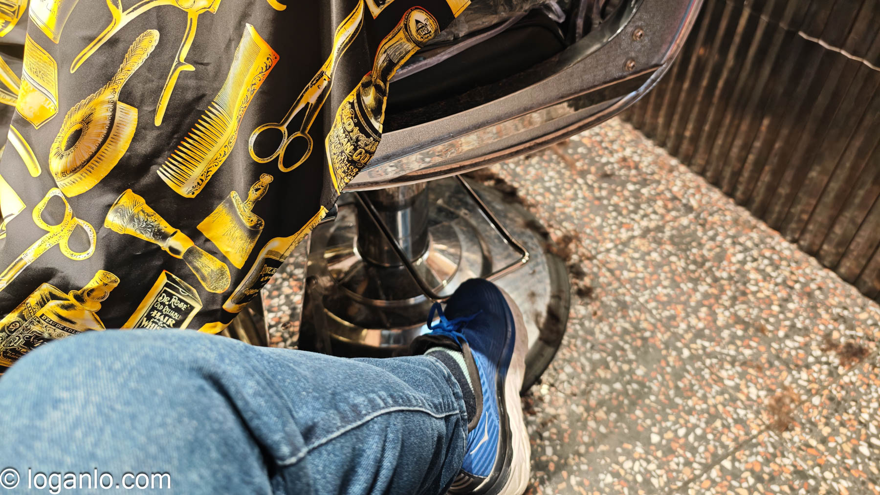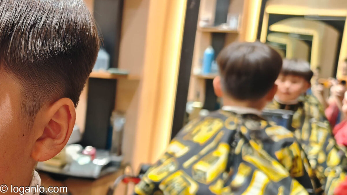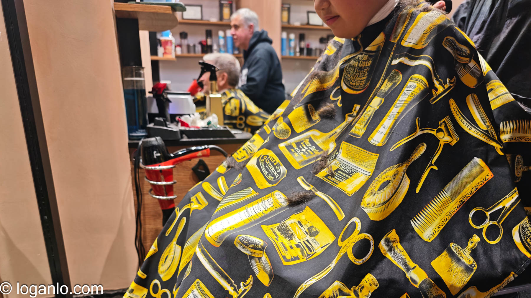 Unfortunately, with the exception of that brief visit the other day, he’s not really been able to spend much time with them to get a haircut with them so…I took him out for his first haircut (with me).